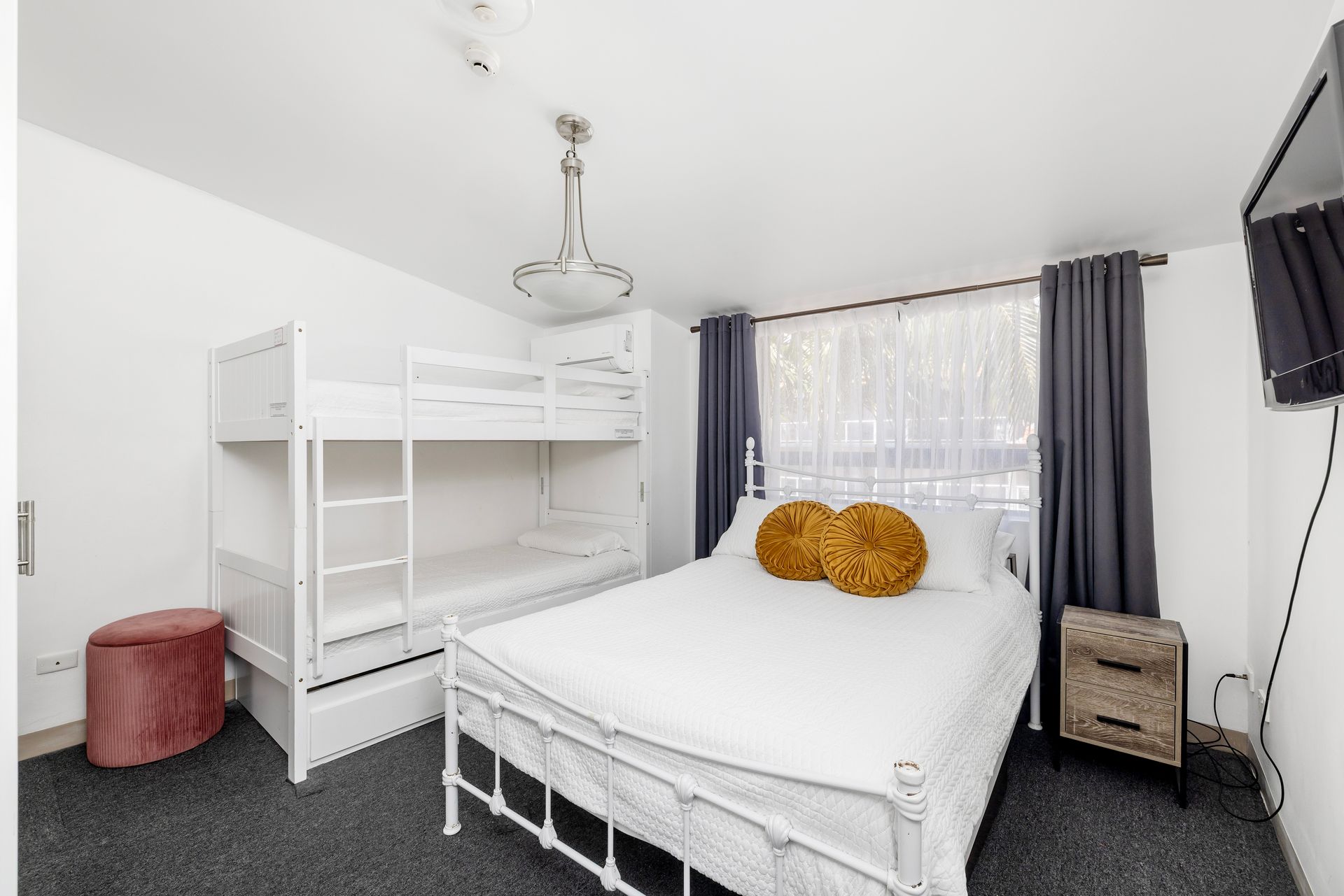 Bedroom Two- One Bunk Bed ( Top Bunk only suitable for under 25kgs ), One Queen bed with Split System air conditioner and television.