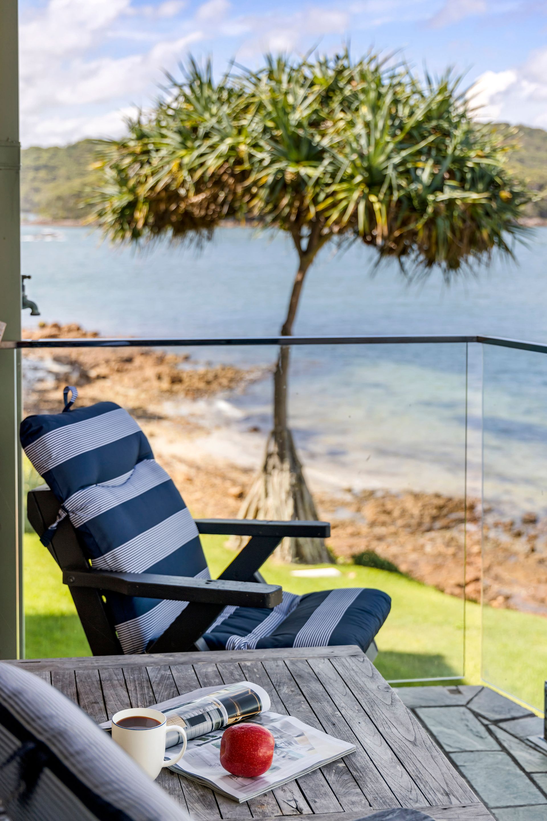 Step outside to your beautifully manicured lawns perfect for a picnic whilst the kids play in the sand with the beach view or if you are lucky spot the dolphins pass by. These calm waters on your door step are perfect to kayak or paddle board in the bay or around the headland for a coffee stop at the Boat Shed cafe.